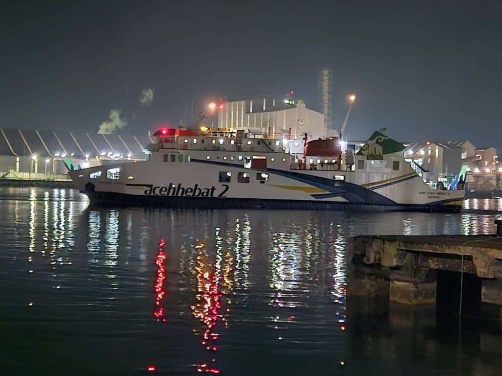 Kapal Aceh Hebat 2 saat hendak merapat di pelabuhan. Kapal ini digunakan untuk membantu pasokan gas LPG ke wilayah terdampak bencana banjir dan longsor di Aceh (Foto: Ist)